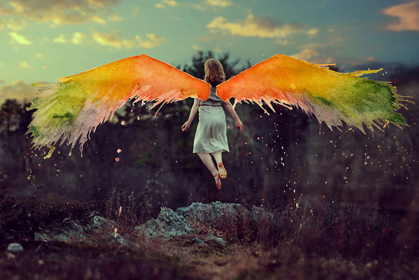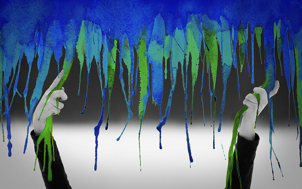 La peinture aquarelle retravaillée avec Photoshop s’intègre parfaitement aux compositions photographiques et les anime d’un souffle poétique intense et surprenant, presque métaphysique.