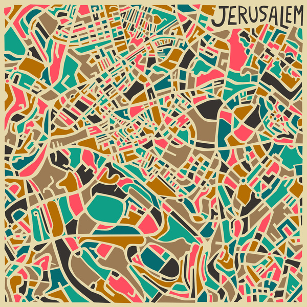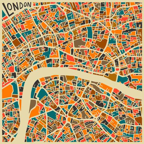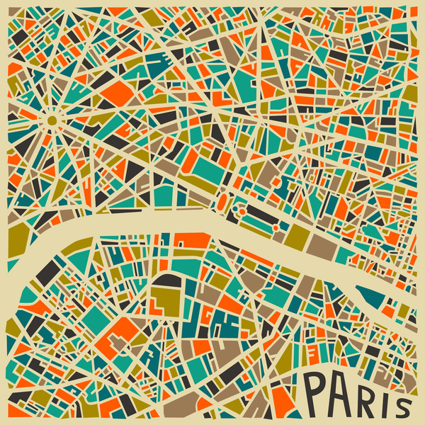 Par le biais de prismes colorés imaginaires, ces cartographies de Paris, Londres, New-York ou Milan arborent un design retro semblable aux affiches et pochettes de jazz des années 50 et ne sont pas sans évoquer également l’Art Déco ou l’expressionnisme Allemand au travers d’une esthétique mêlant grilles géométriques, déconstruction et palette de couleurs limitée.