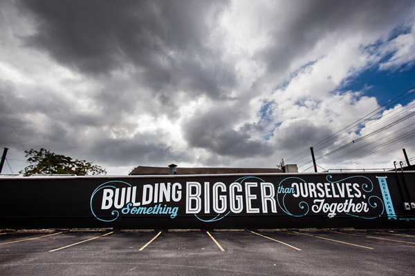 Magnifique collaboration « typographic » entre un graphiste et un peintre pour changer le visage de leur « maison » c’est à dire la ville de Louisville dans le Kentucky.